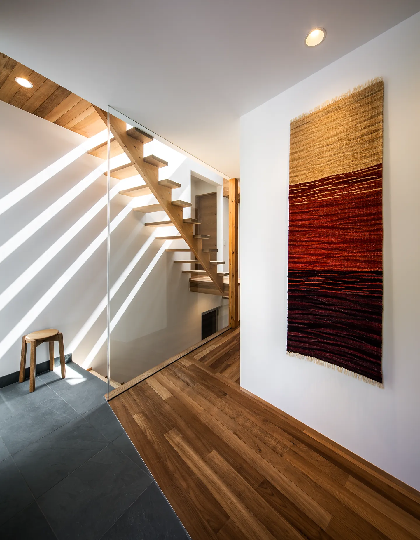 This vertical void, paired with a skip-floor configuration, visually and spatially connects all the main areas. Movement through and around the crevasse becomes a spatial experience—looking up, down, and across the shifting volumes.