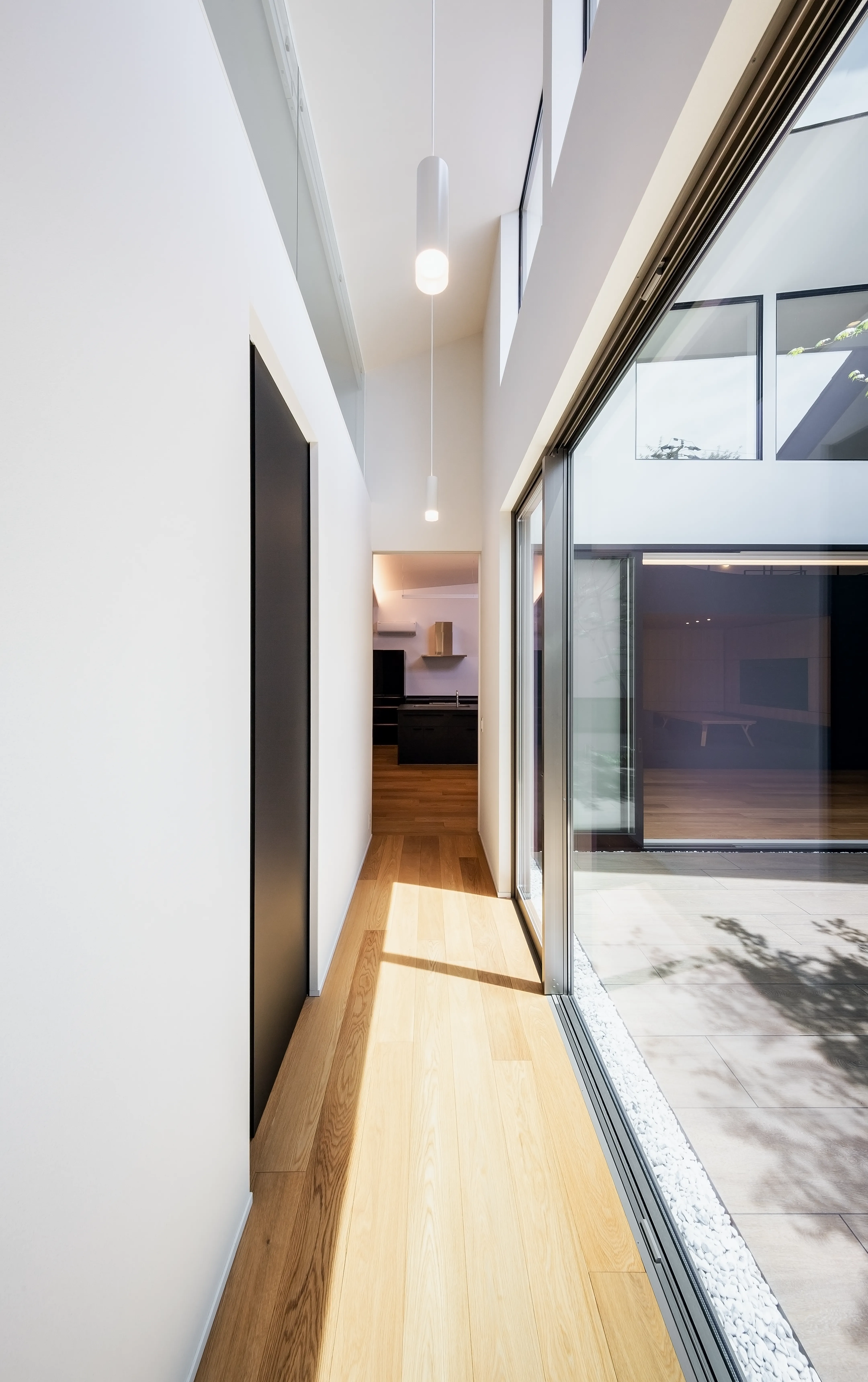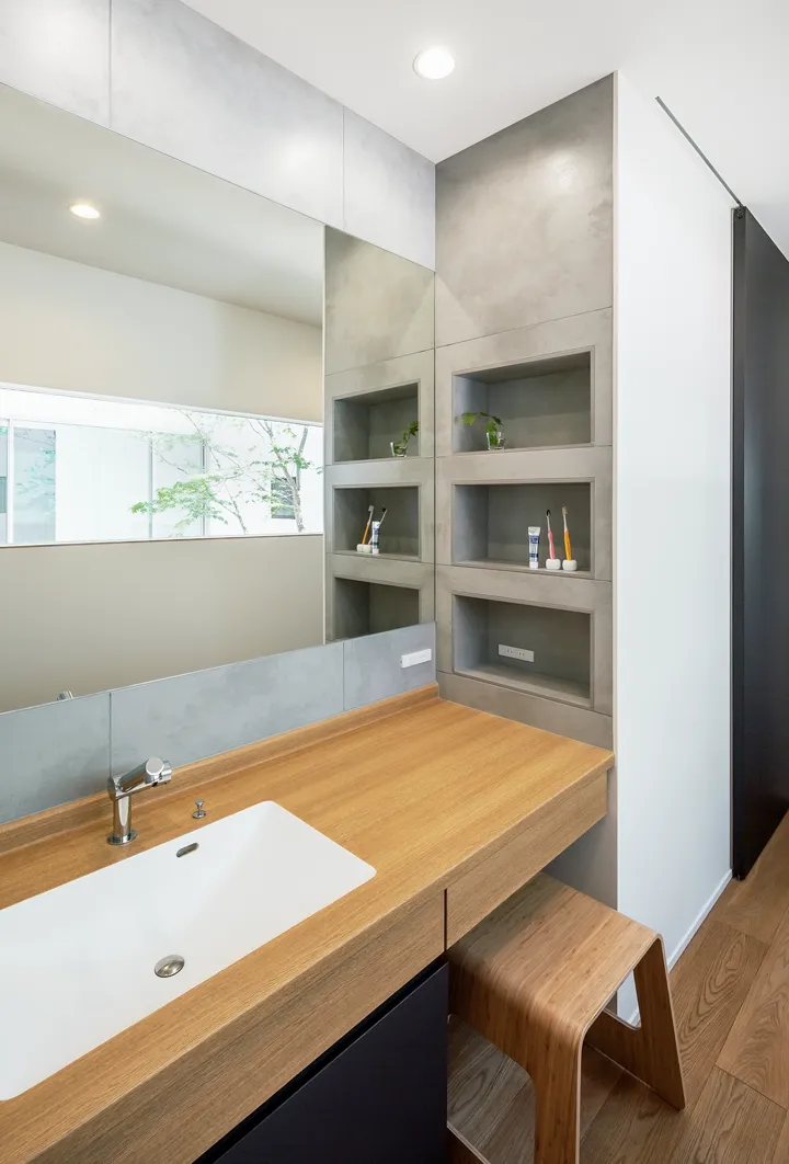 Our first priority in planning was to create an outdoor space with complete privacy from the surroundings. Taking advantage of the ample site, we arranged a courtyard at the center of the building. Because the house is single-story, the courtyard can admit light even in winter, resulting in a more favorable environment.