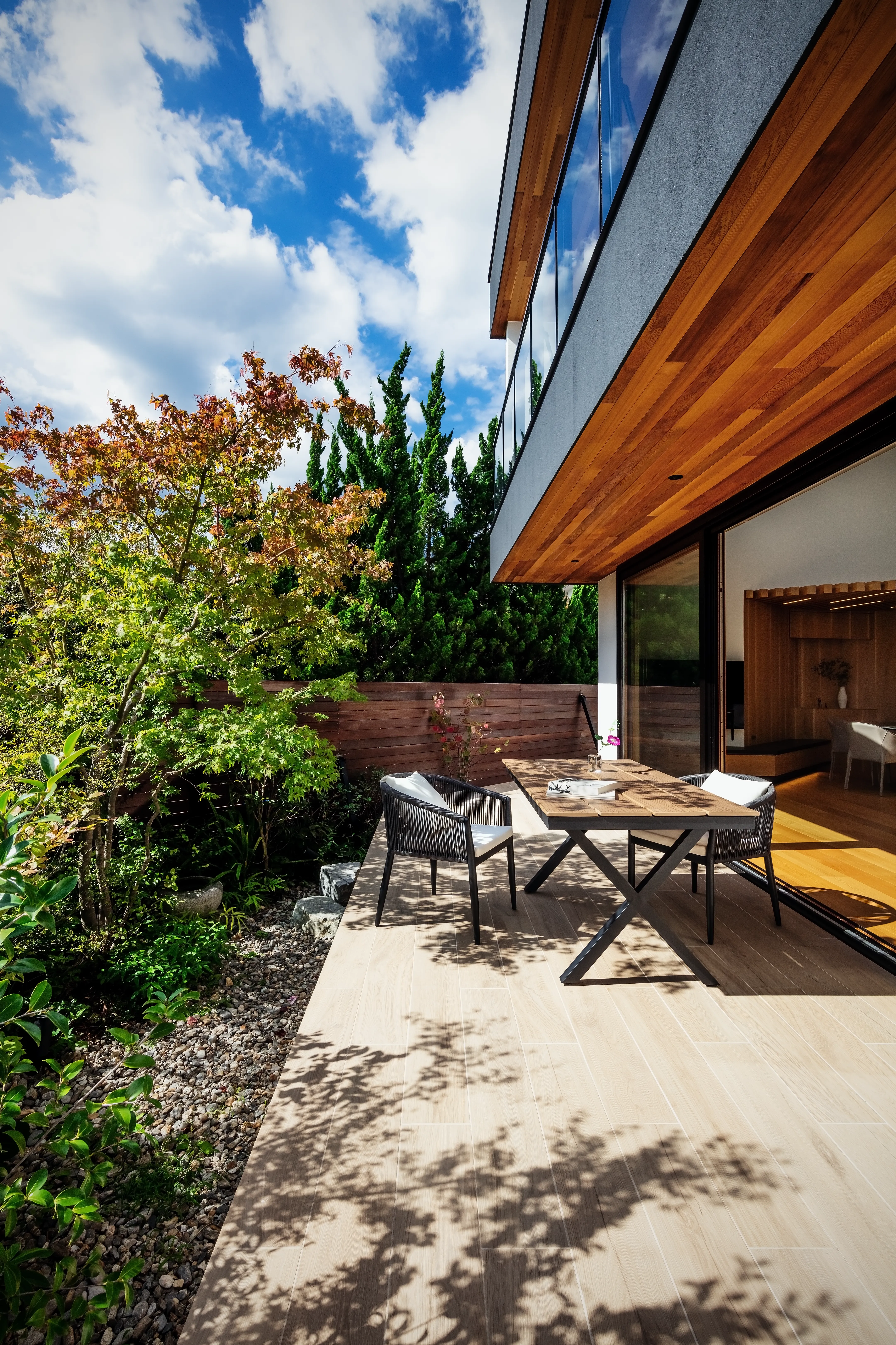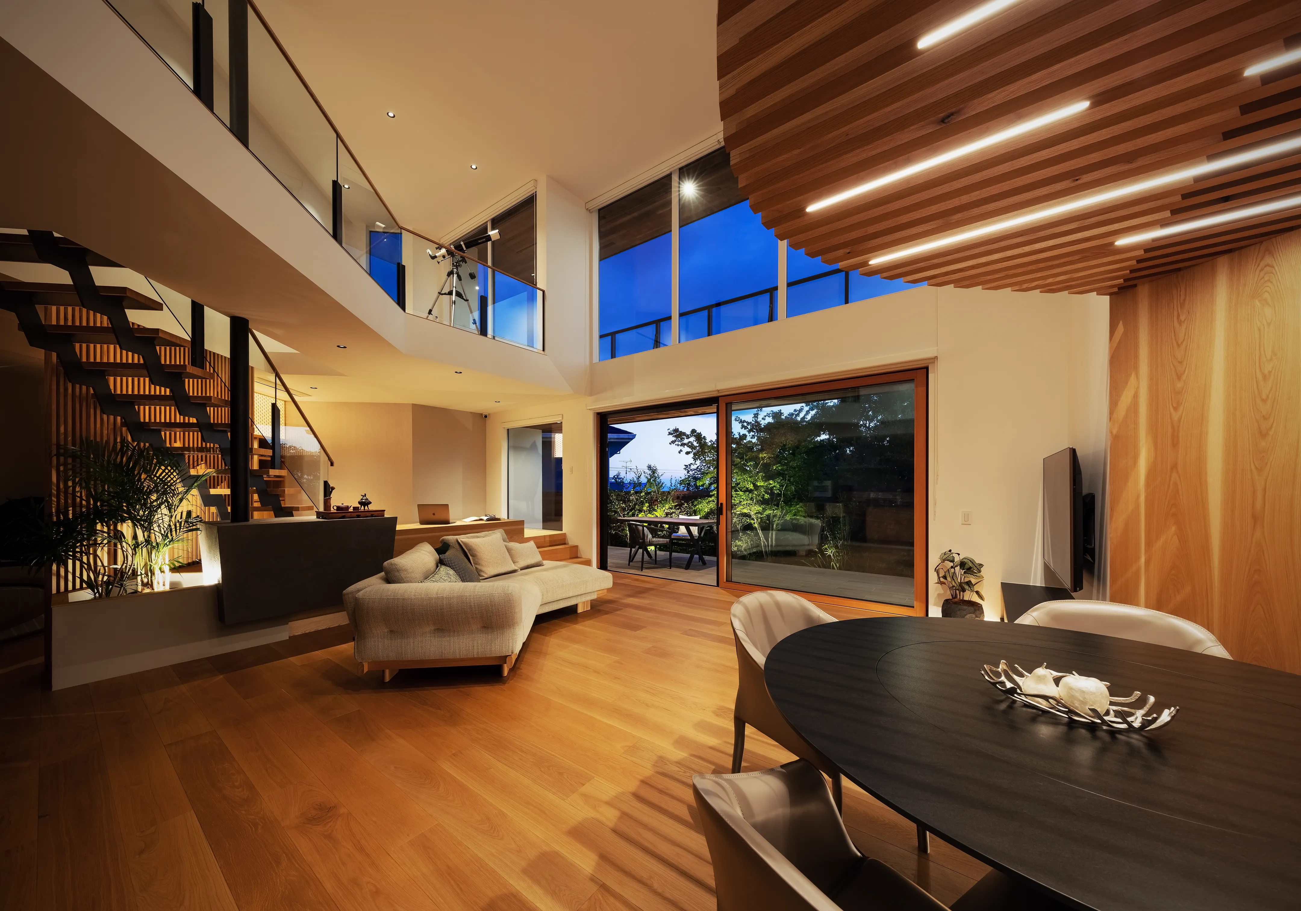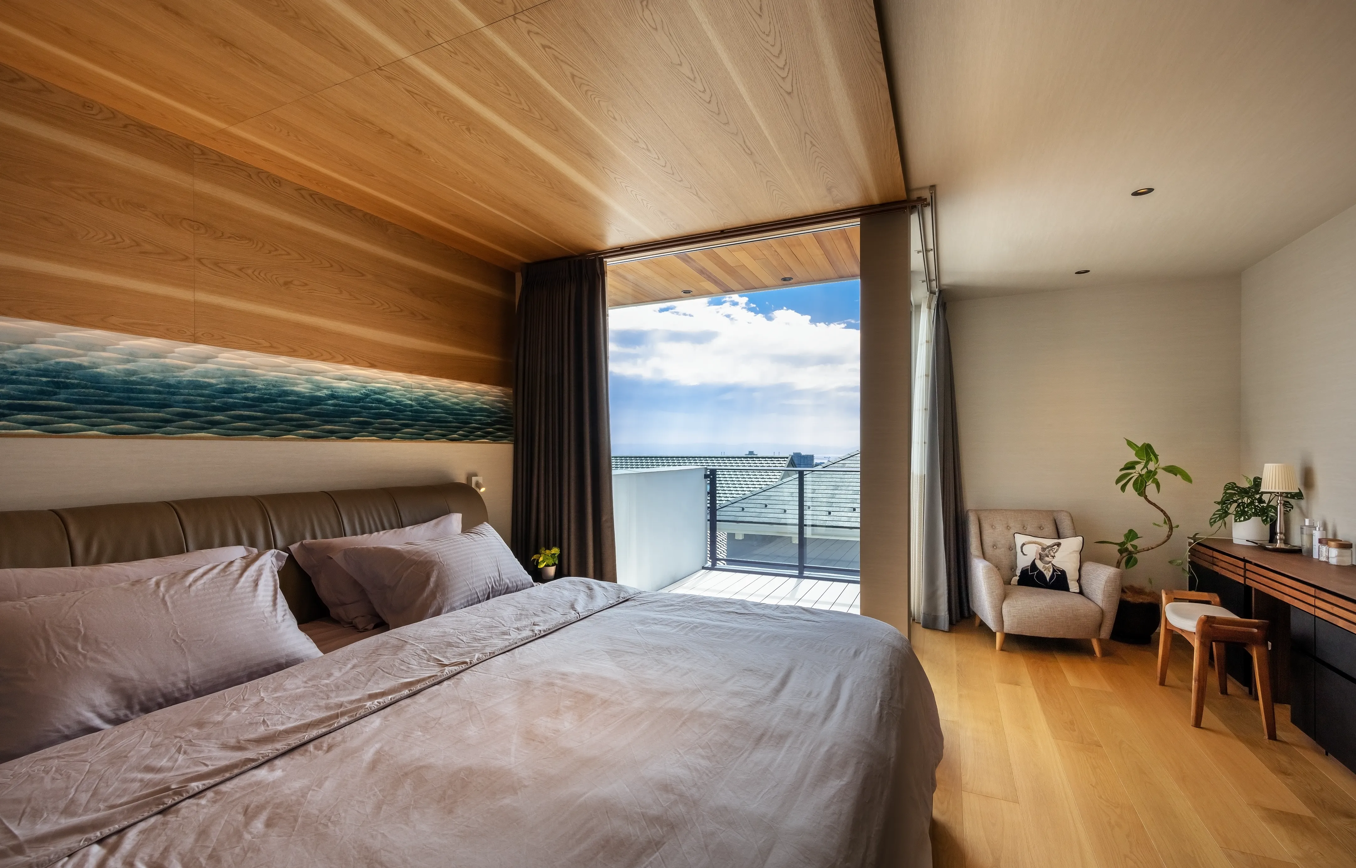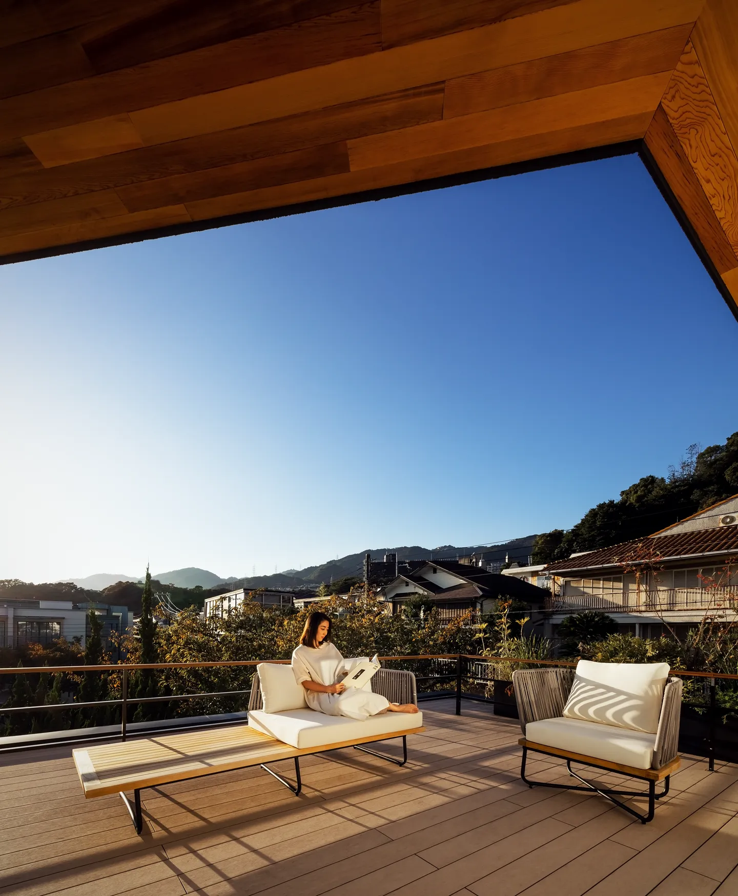 On the second floor, three terraces take advantage of the favorable surroundings. The Sunset Terrace offers a spacious setting for enjoying dusk as part of daily life. The Outdoor Lounge, linked to the indoor lounge, faces southwest over the city of Kobe and serves as a quiet place for night views and drinks. The Private Balcony adjoins the master bedroom, opening southward to the morning sun. Together, these outdoor spaces bring seasonal variety and everyday moments into the life of the home.