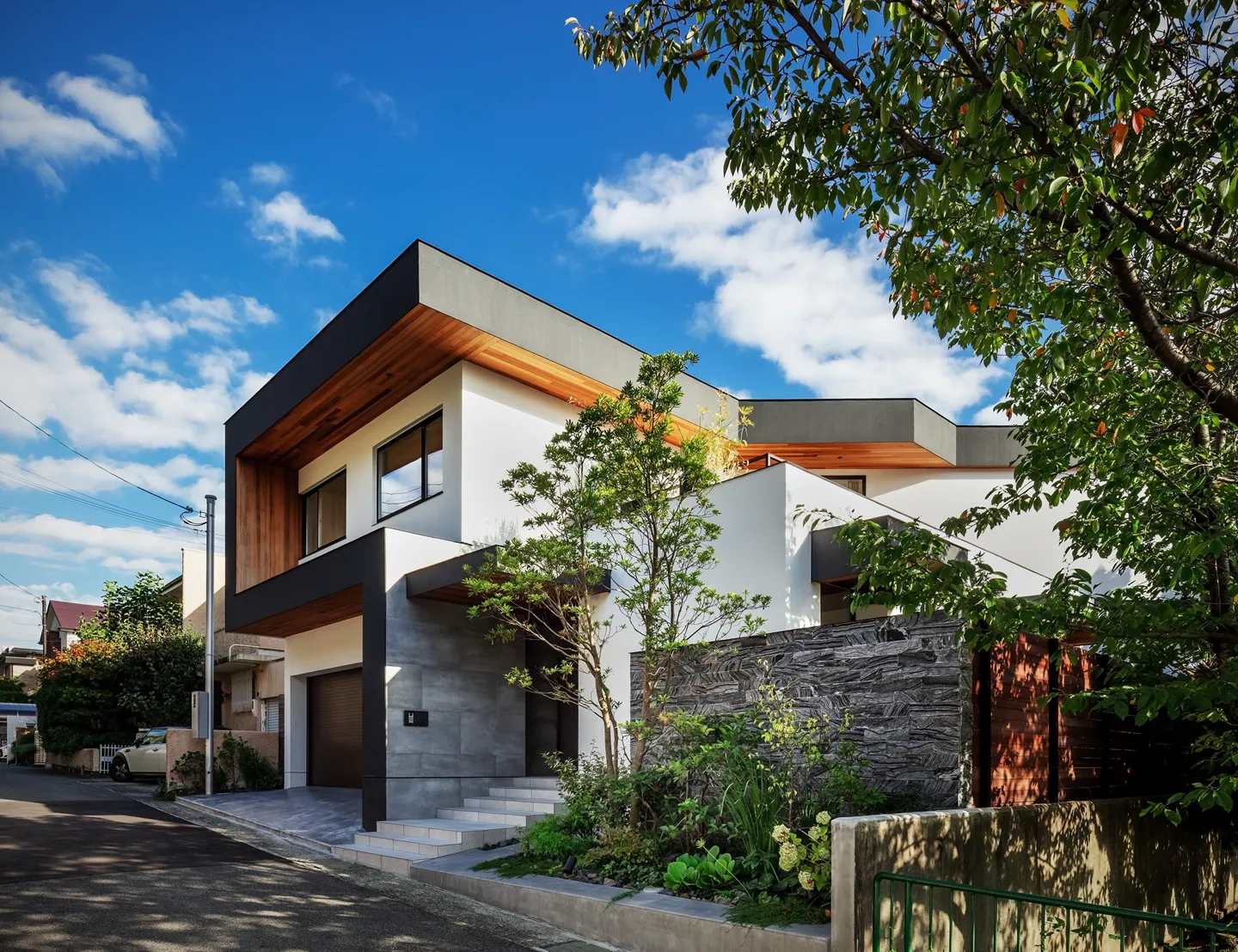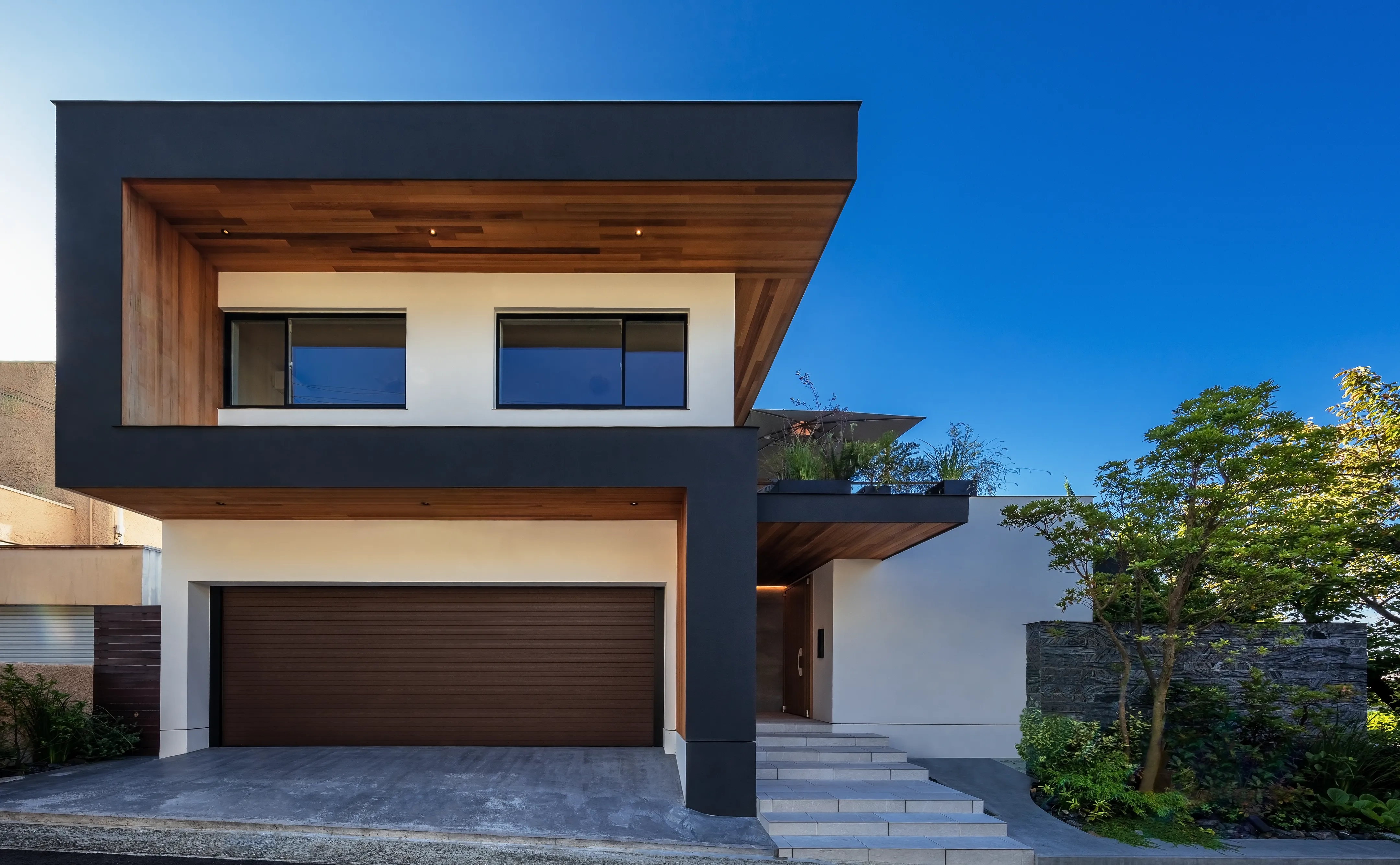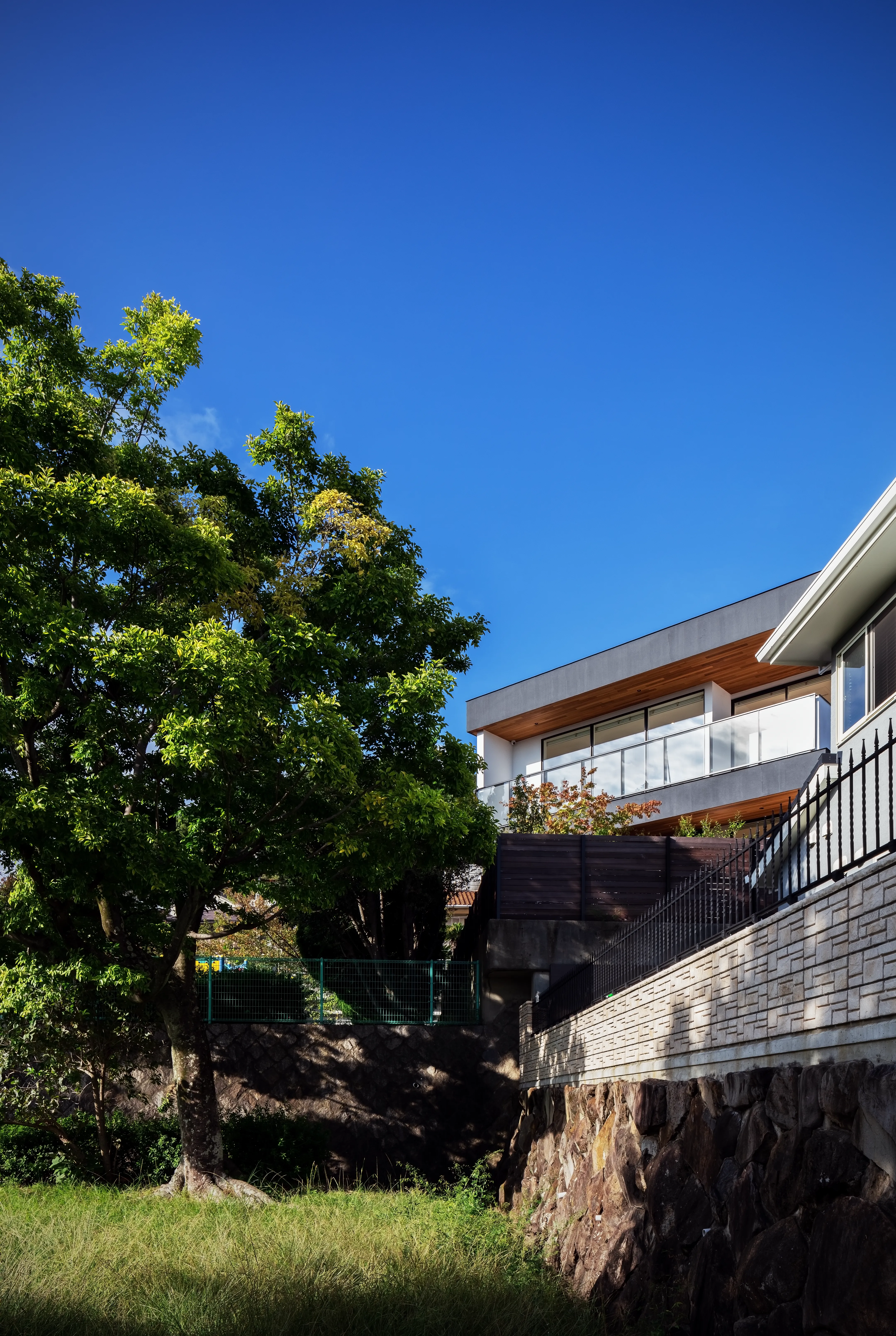 The site is located high on Jumonji-yama in Kobe, overlooking the city from a quiet hilltop. The area was originally developed in the 1960s on the grounds of a former estate of the wealthy Herman family and has since been known as a prestigious residential neighborhood with a calm and spacious character. Here, a large wooden residence was planned: two stories, a building area of 195 m², and a total floor area of 234 m².