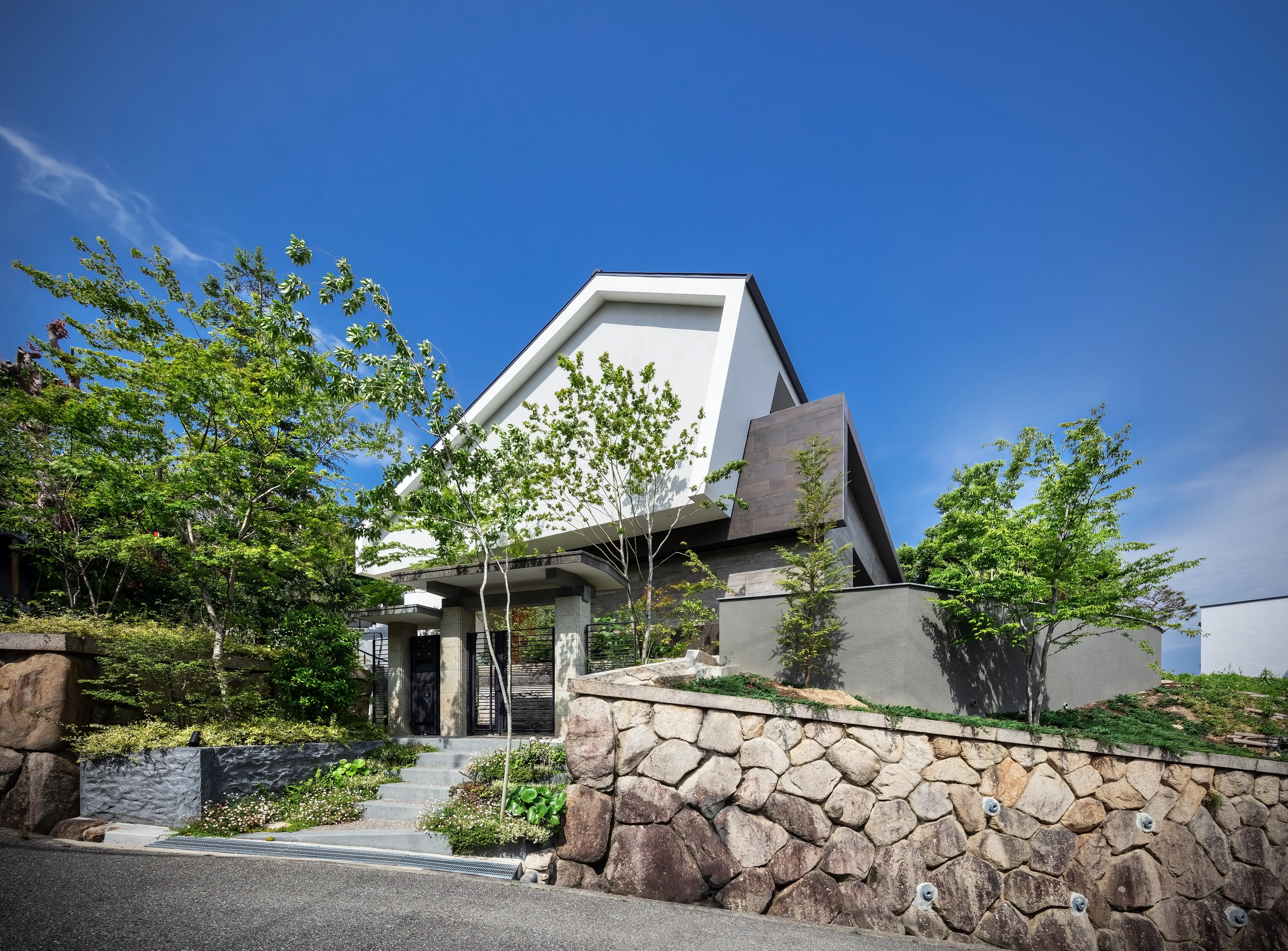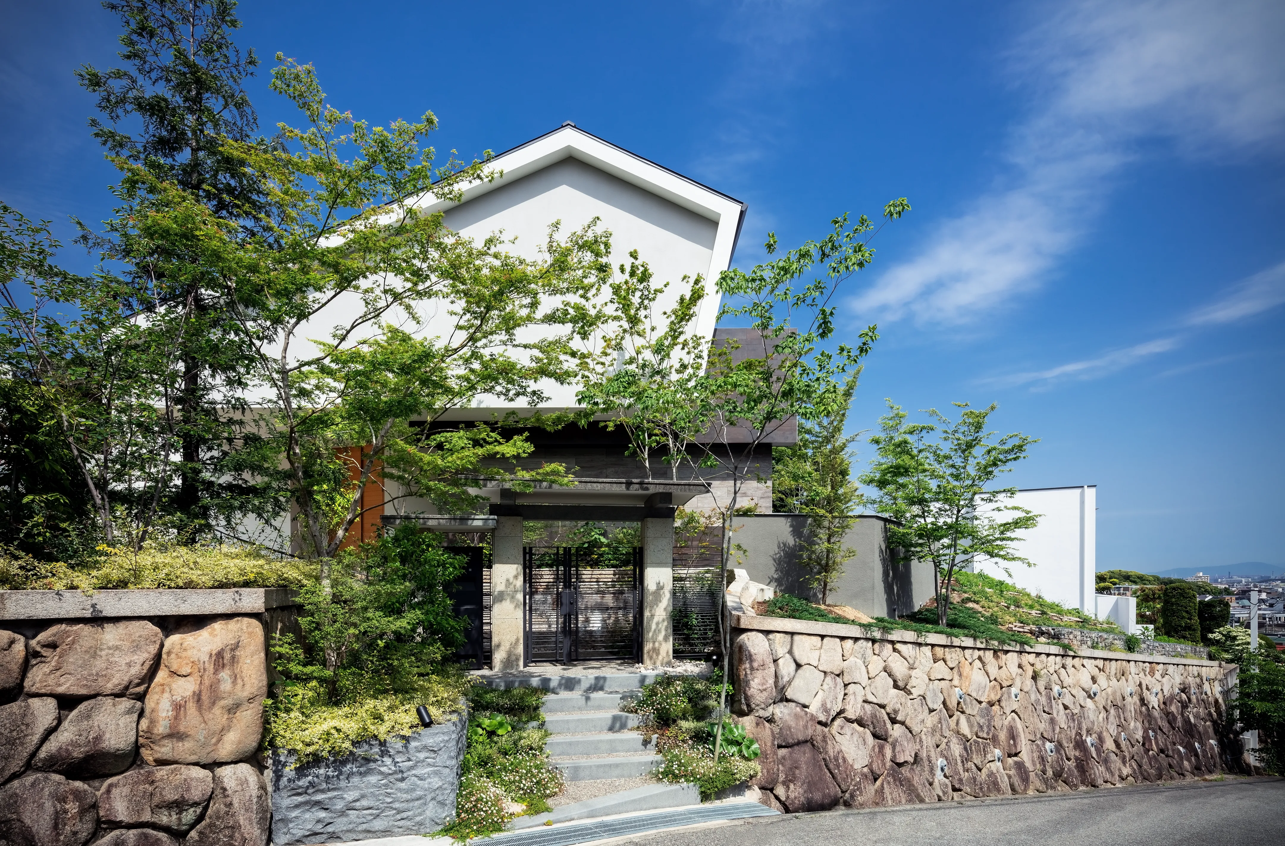 In planning, we studied the site’s history and topography, as well as how the client had lived in the previous house and how its rooms were arranged. The result is a “house on a hill with three gardens,” designed to optimize wind flow, sunlight, views, and circulation.