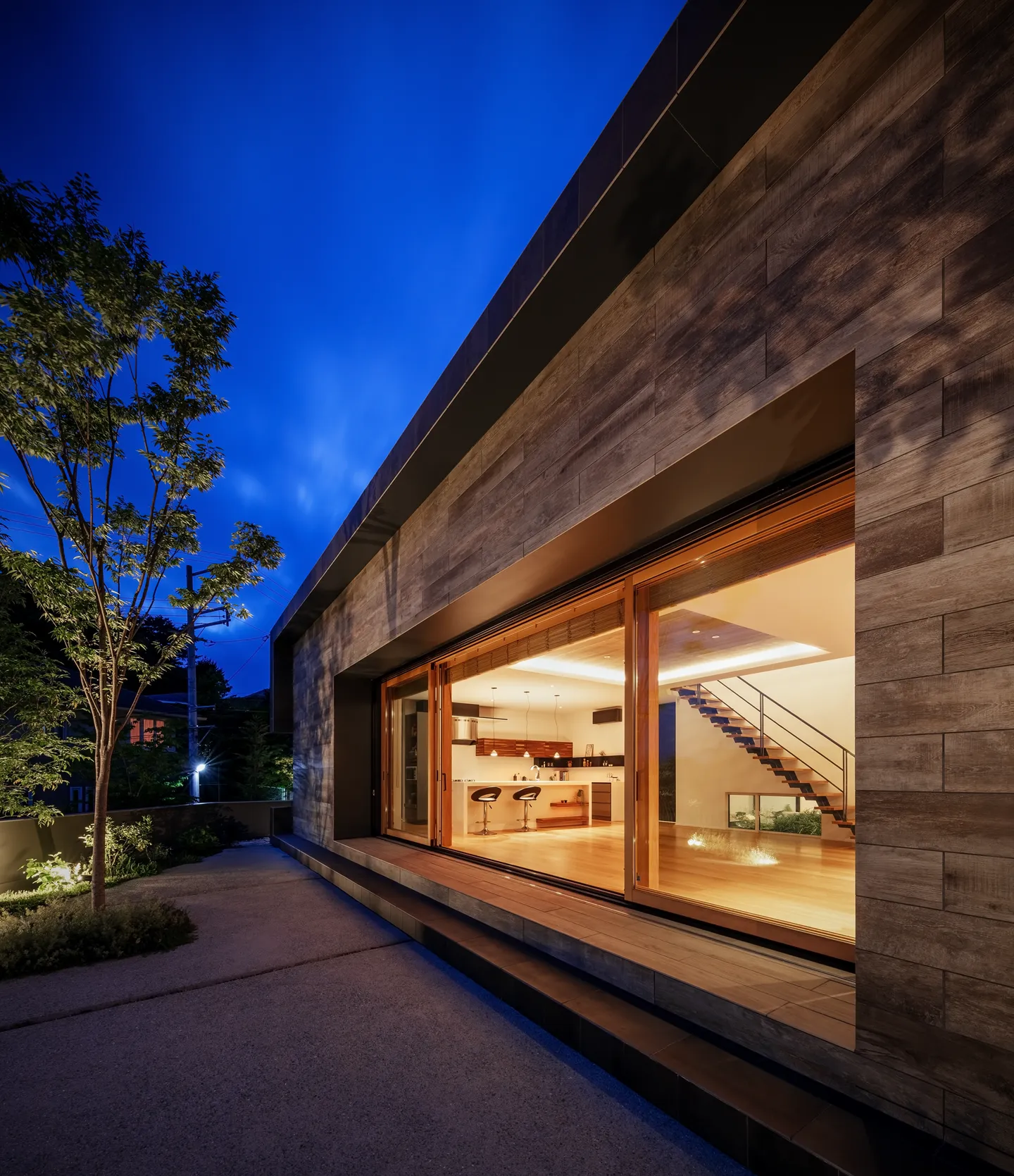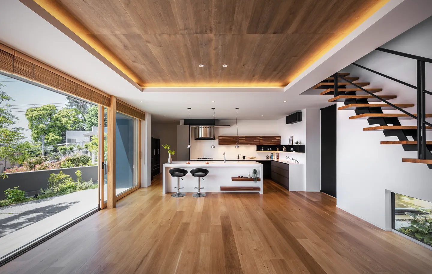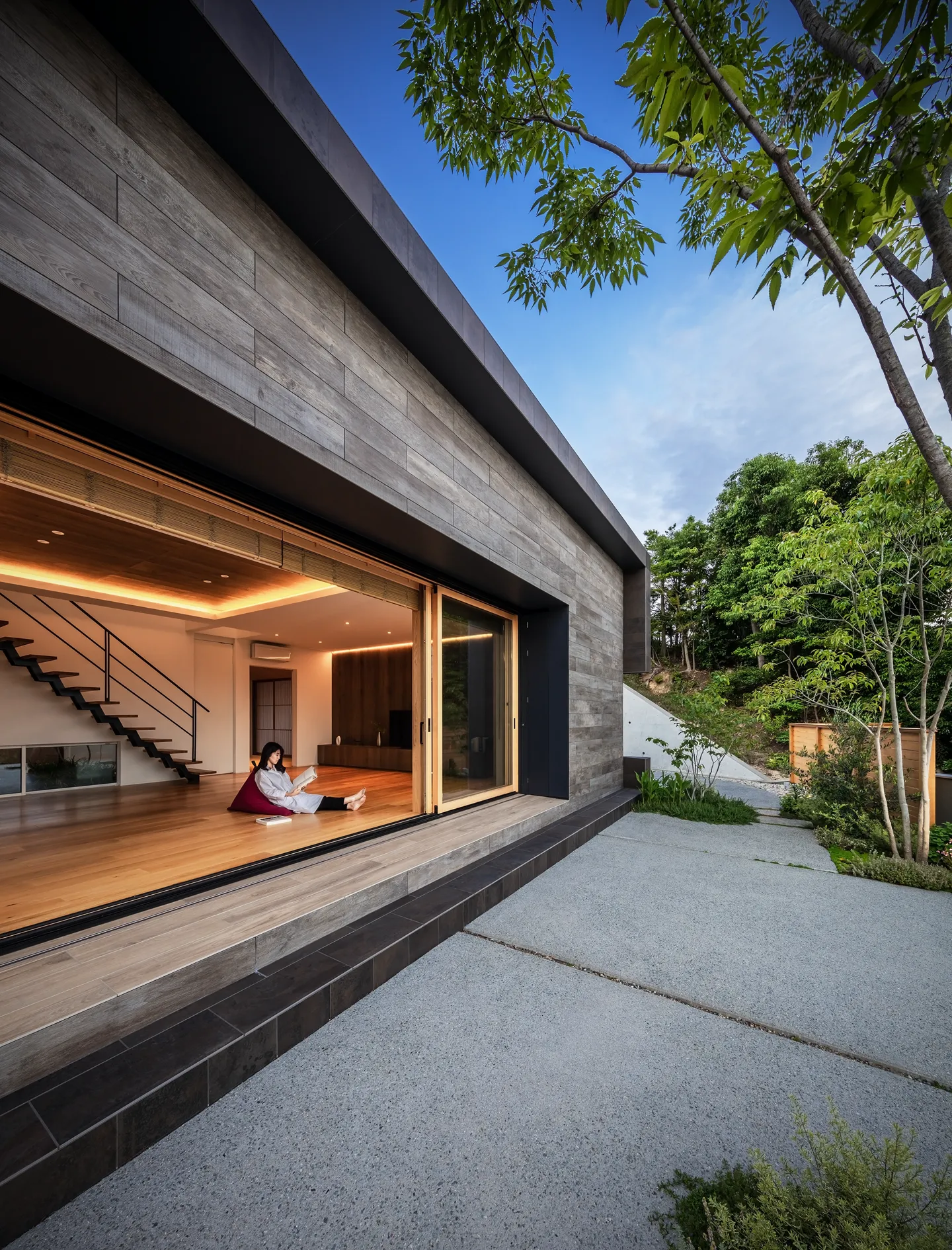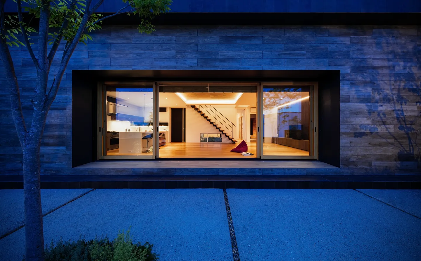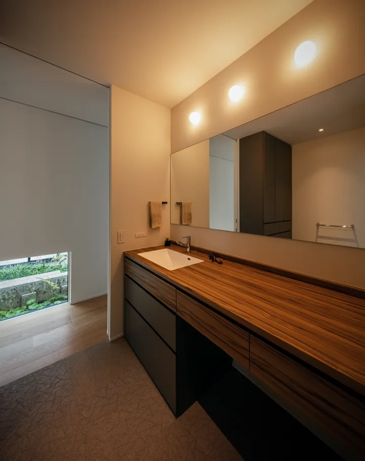 Located directly in front of the LDK, this garden connects seamlessly through a large wooden sash opening measuring 7.3 m × 2.6 m high. It creates a space that naturally invites one outdoors, where breezes pass through and distant sea views open up.