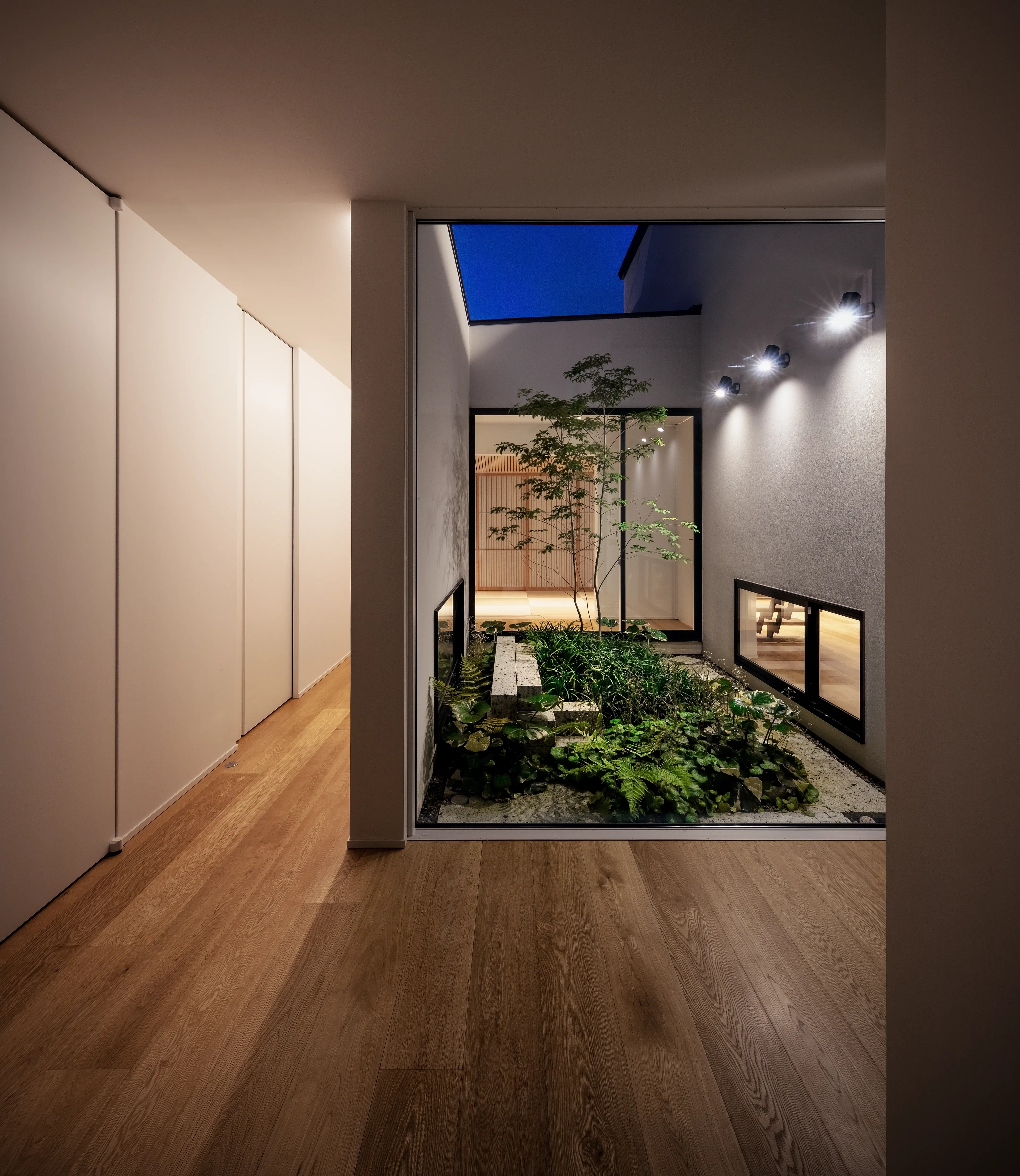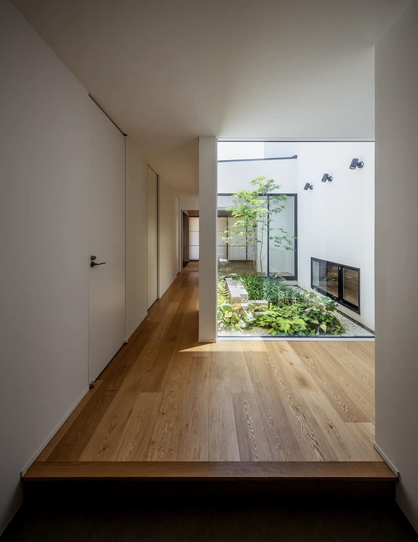 As its name suggests, this court brings light and air into the residence. It also offers visual delight when moving along the corridor.