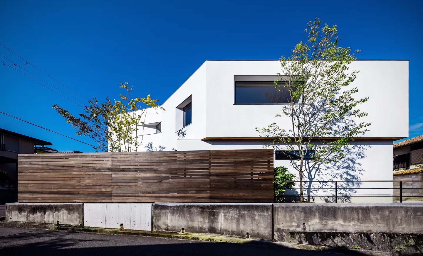 By integrating the entrance approach, the front yard was maximized. With all other functions placed on the 2F, the 1F was reserved entirely for the LDK, enabling the creation of a 56-tatami indoor–outdoor living area.