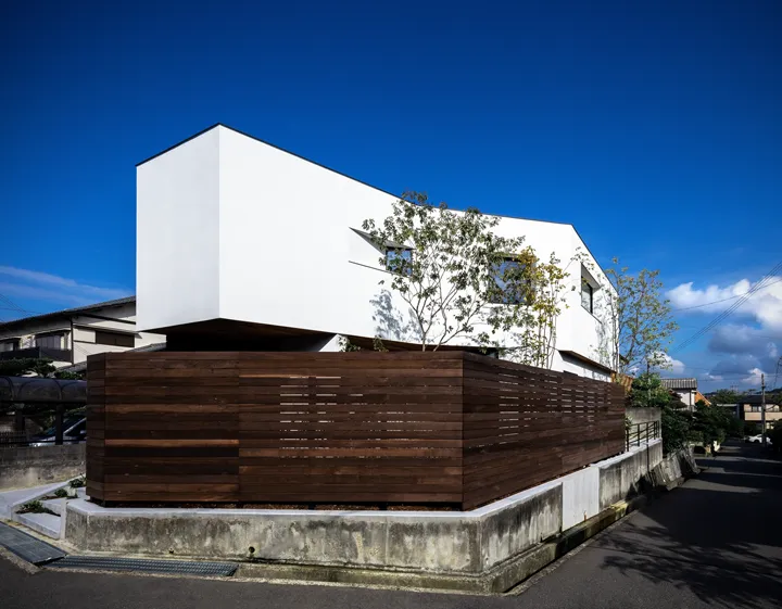 In a suburban neighborhood where the sky opens wide and houses are set with space between, we planned a two-story wooden house with a building area of 27 tsubo (≈89 m²) and a total floor area of 44 tsubo (≈145 m²).