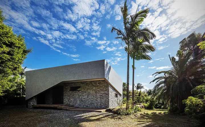 屋久島南部の山麓に計画された、手つかずの自然に身を委ねるための静かな滞在拠点です。